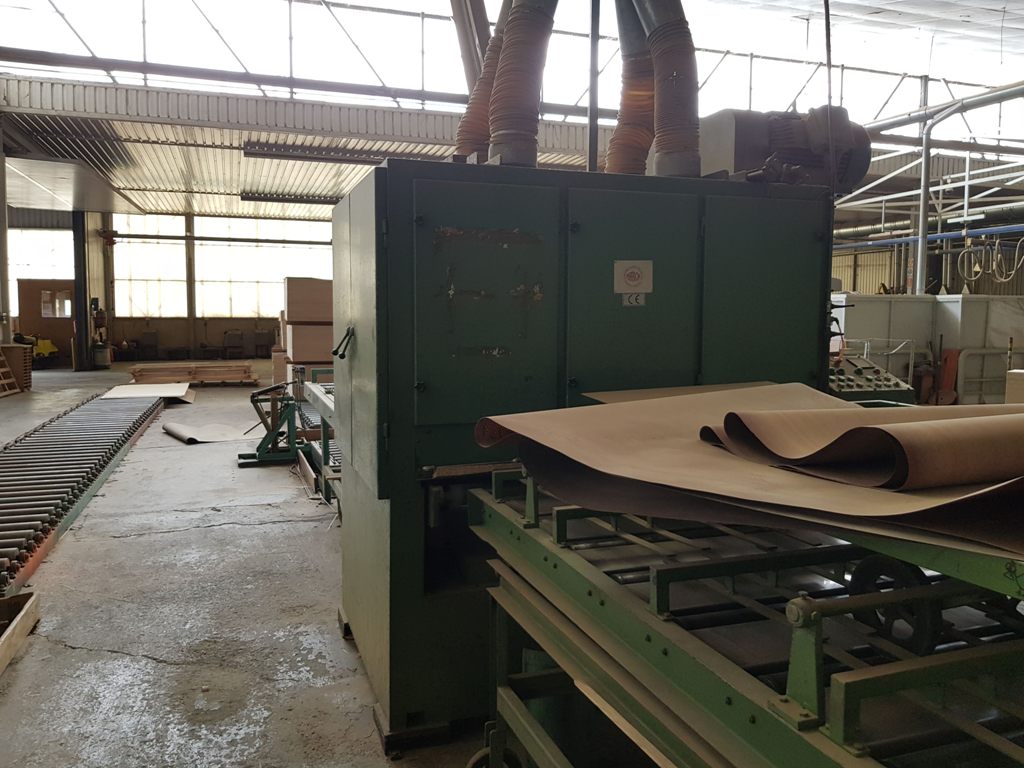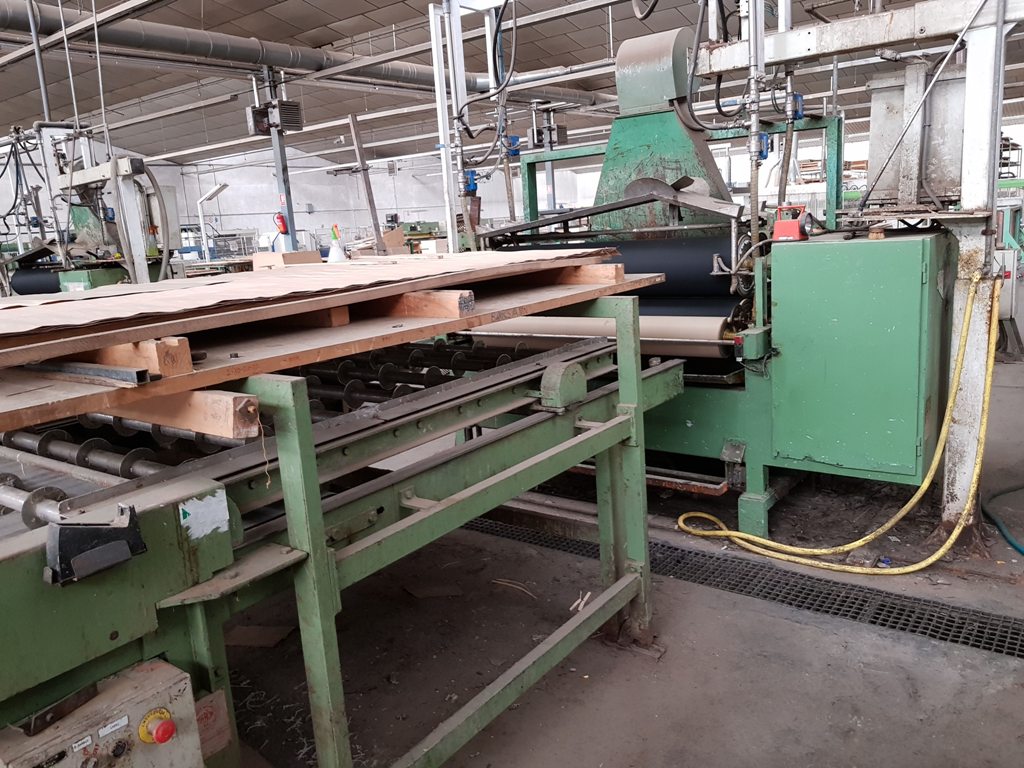 4 rollers glue spreader machine, conveyor discContinuous hot press outfeedingTrimming station general view1 Roller bottom sanding machine2 rollers Top sanding machinerFinished board stacker2 pcs 3 ways valves