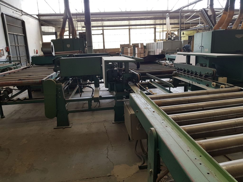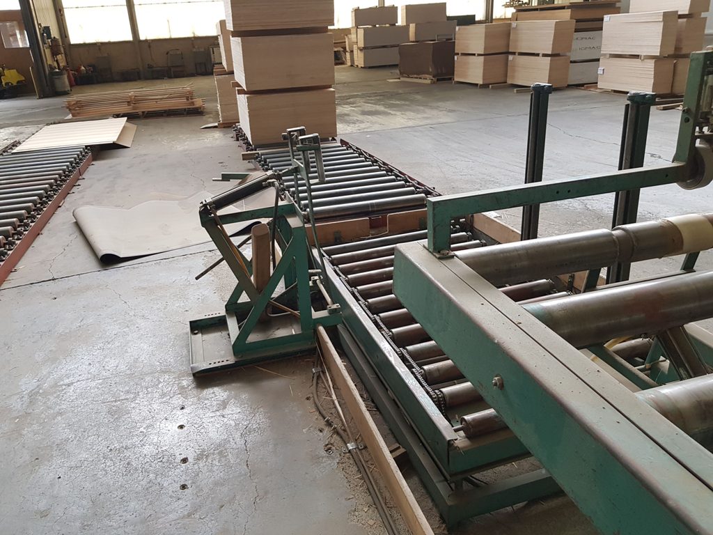 Driven Conveyor roller between transversal trimming unit and bottom sanding machine